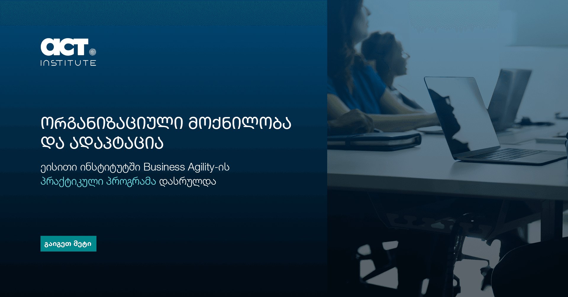 ACT ინსტიტუტი გთავაზობთ როგორც ონლაინ, ასევე ჰიბრიდულ და ფიზიკურ სივრცეში ჩატარებულ ტრენინგებს, რათა მოვერგოთ სხვადასხვა მონაწილეთა საჭიროებებს. გთხოვთ, კონკრეტული პროგრამის დეტალებისთვის ეწვიოთ მის გვერდს.